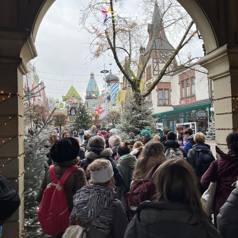 Après deux ans de pause forcée en raison du Covid, nos élèves de 3ème ont enfin pu se réjouir d’un nouvel échange franco-allemand avec notre école partenaire en Forêt Noire. Entre le 1er et le 9 décembre, ils ont été chaleureusement reçus par les familles d’accueil, le lycée Christophorus et même le maire de la ville. De superbes excursions étaient au programme comme la visite du musée Mercedes-Benz à Stuttgart, d’une brasserie typique allemande et à ne pas oublier, du marché de Noël. Mais le moment le plus fort aura été la journée à Europapark, où les élèves se sont défoulés sur toutes les montagnes russes.