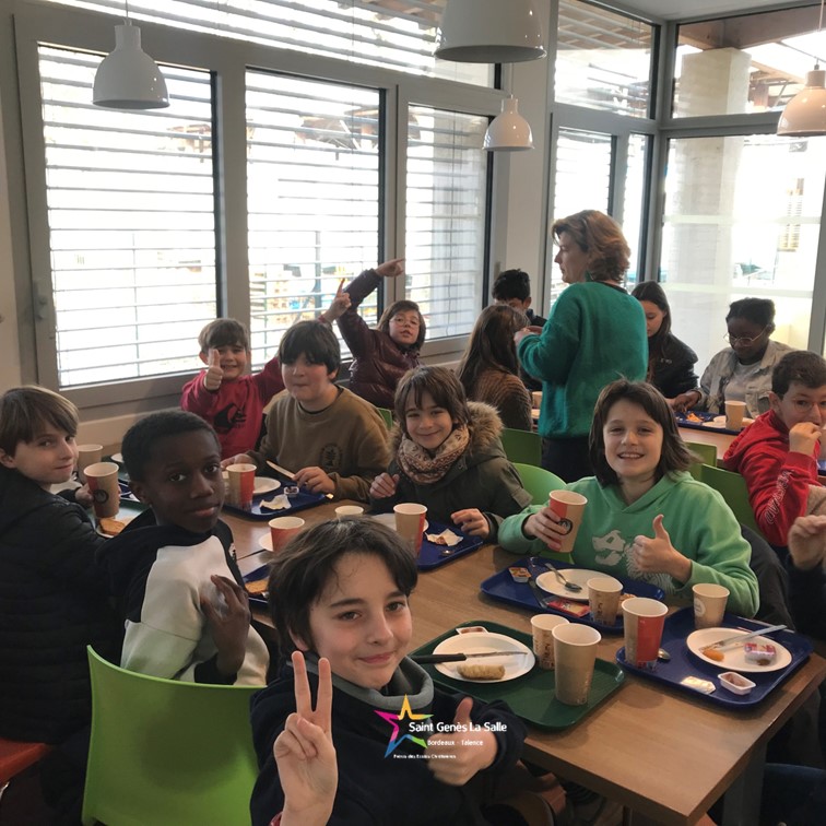 Les infirmières scolaires, Mesdames Bouteiller et Bossard, en lien avec M. Buard, professeur principal des 603, ont mis en place une action de prévention sur l’importance de prendre un petit-déjeuner équilibré le matin avant de venir au collège. Suite à un questionnaire envoyé il y a quelques jours et interrogeant les élèves sur leurs habitudes alimentaires, les infirmières, grâce aux réponses récoltées ont pu apporter leurs compétences en termes d’équilibre alimentaire. Il ne manquait plus qu’à joindre la théorie à la pratique en rejoignant le self où un petit déj équilibré préparé par la société de restauration Scolarest attendait les élèves.
