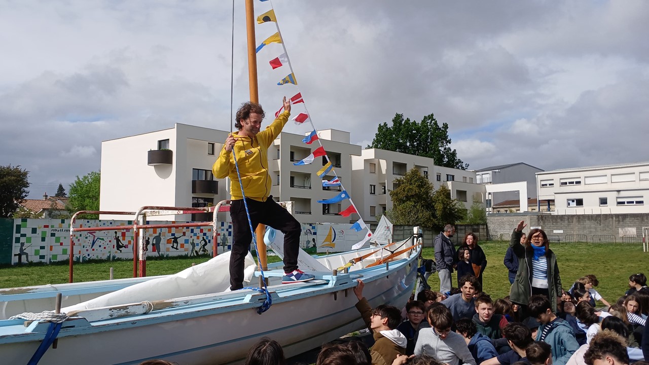 Le collège Saint-Genès La Salle de Talence a eu l’immense honneur d’accueillir le navigateur Arnaud Boissières, figure emblématique du Vendée Globe et surtout ancien élève de l’établissement. Invité par Jérôme Pigneux, grand admirateur du skipper, dans le cadre d’un projet pédagogique autour de l’océan et de la navigation, « Cali », comme il est surnommé, a été accueilli comme une rock star et a partagé son expérience hors du commun avec les élèves.