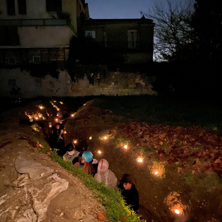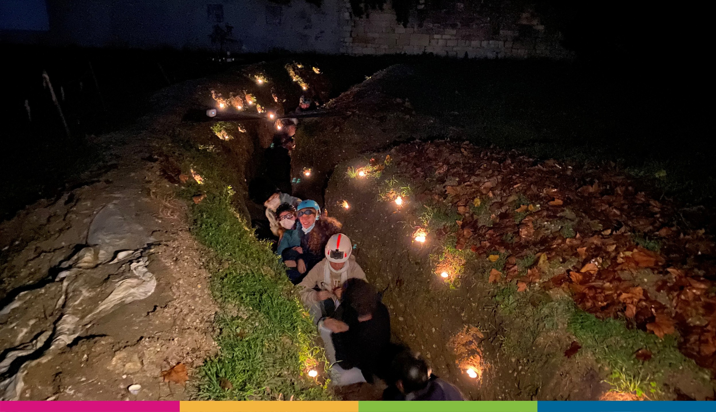 Le second temps fort fut une soirée immersive dans la tranchée le 10 novembre dernier, de 18h30 à 21h30. Les élèves devaient s’y déplacer sans jamais dépasser la tête du parapet — sous peine d’être « snipés » et exclus temporairement de la tranchée — et se nourrir uniquement d’aliments semblables à ceux des soldats de 14-18. L’immersion fut renforcée par des simulations sonores de bombardements, des projections de sable, ou encore une attaque au gaz simulée à l’aide de fumigènes.